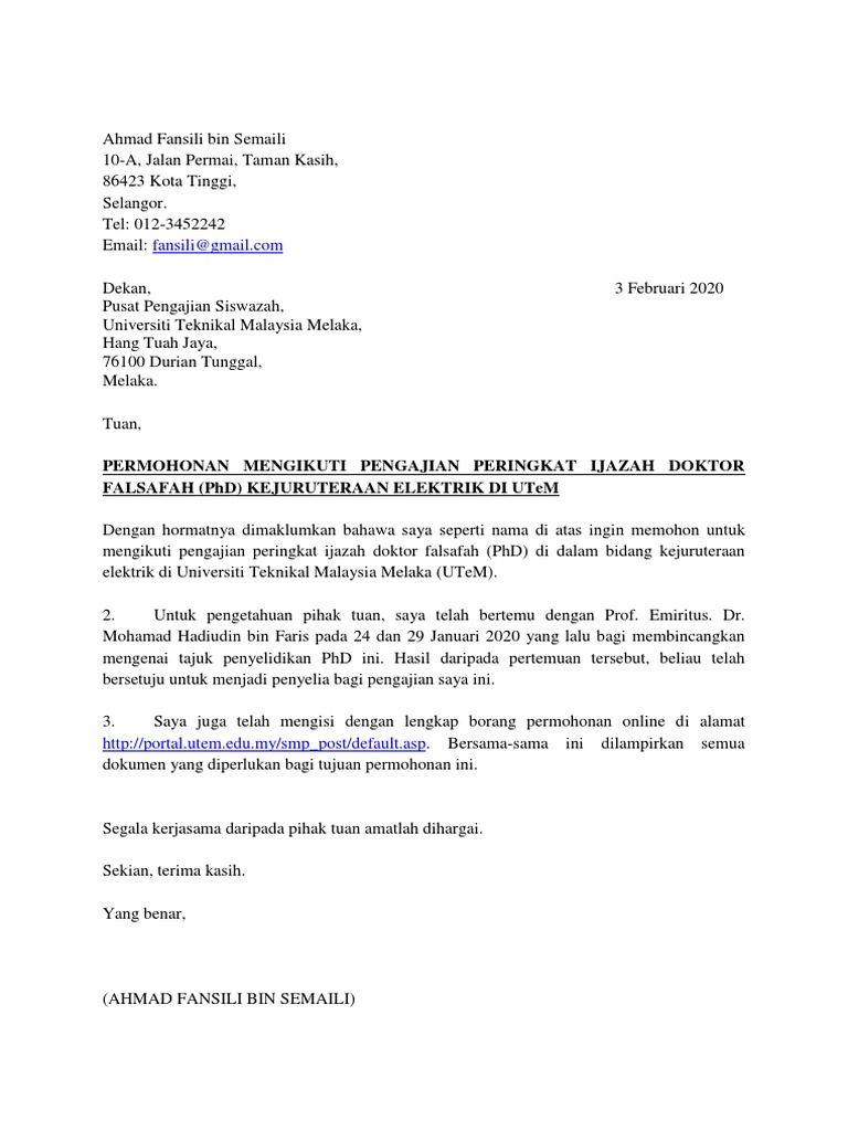 Surat permohonan menggunakan makmal komputer 1. Itu dia informasi mengenai penjelasan lengkap dan contoh surat permohonan yang dapat Anda jadikan acuan saat akan membuat surat. NO KP telah bertugas sejak dari tahun 2010 di XYZ SDN.